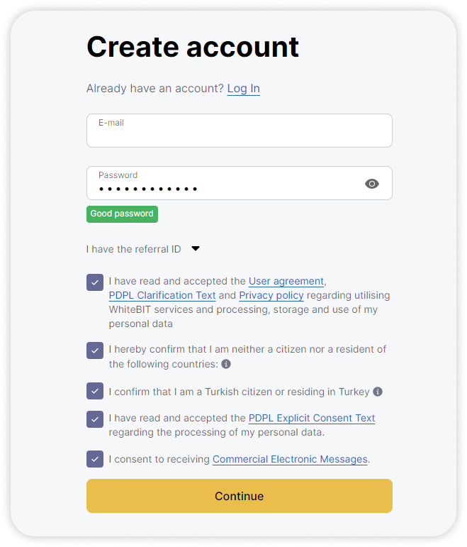 In order to pass KYC verification and start working with the full range of tools of our exchange, you have to create an account on WhiteBIT TR.
