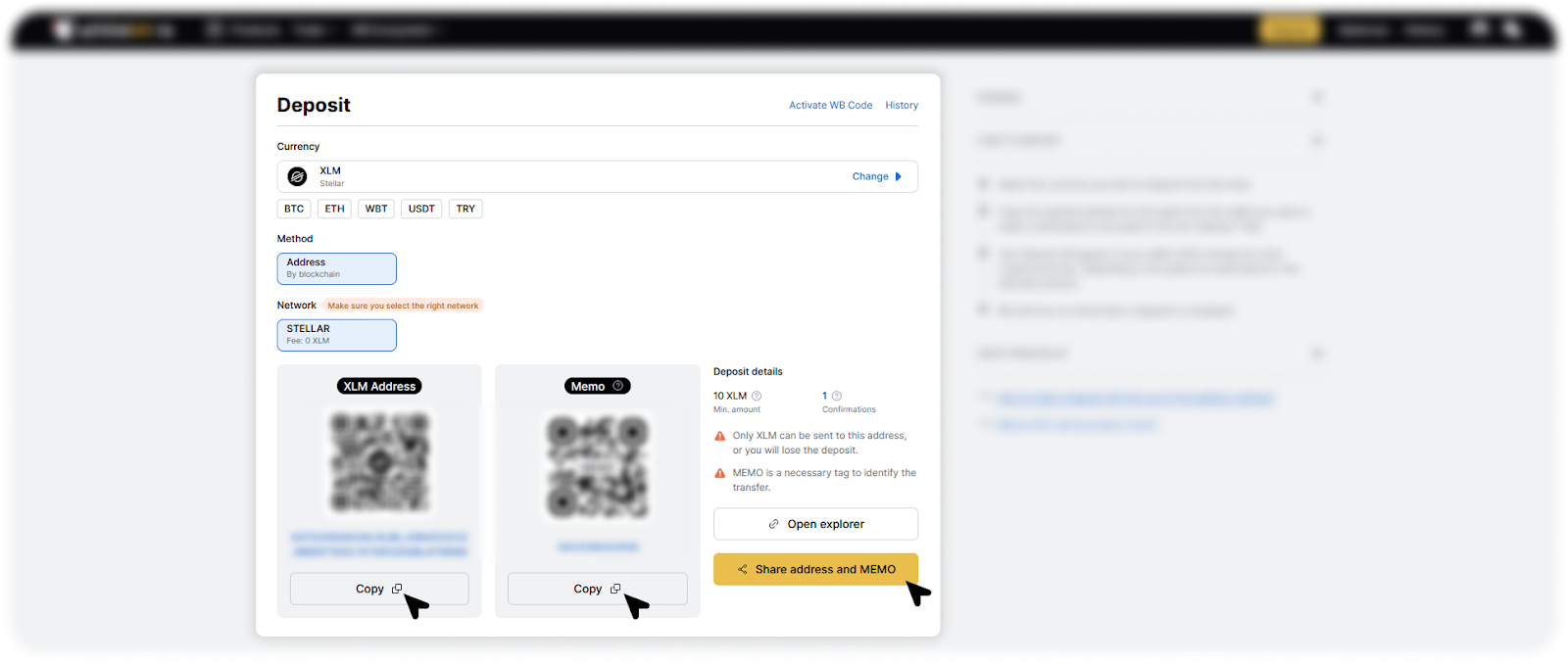 When you deposit one of the above-mentioned coins, you have to specify not only an address (our account), but also your destination tag on the WhiteBIT TR exchange. Otherwise, a deposit will not be credited to your balance.