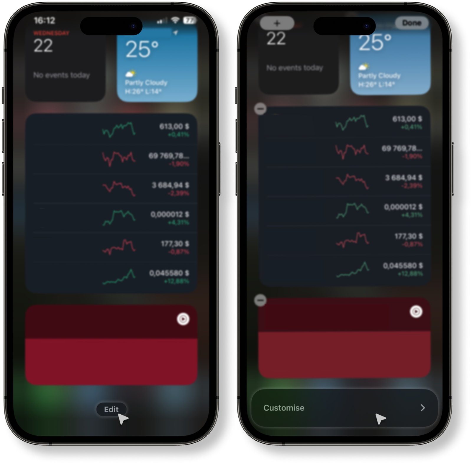 Let's take a closer look at the step-by-step instructions on how to install WhiteBIT TR widgets on IOS and Android mobile devices.
