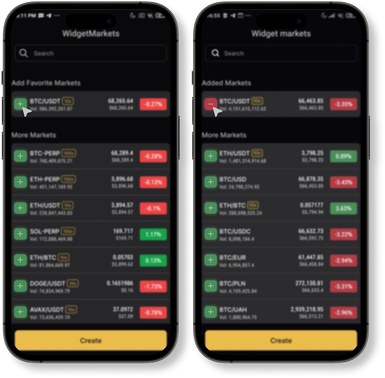 - Done! The widget with the selected markets will be added to the home screen of your device.