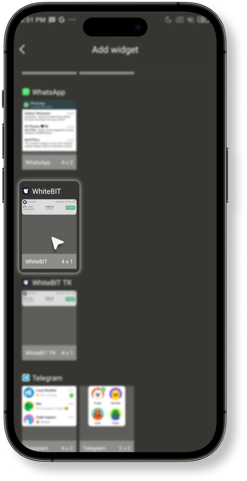 Widgets are a great way to quickly access the information you need. Did you know you can install a cryptocurrency price tracking widget on the WhiteBIT TR mobile app? This feature allows you to view the current cryptocurrency rate without logging into your account on the exchange.