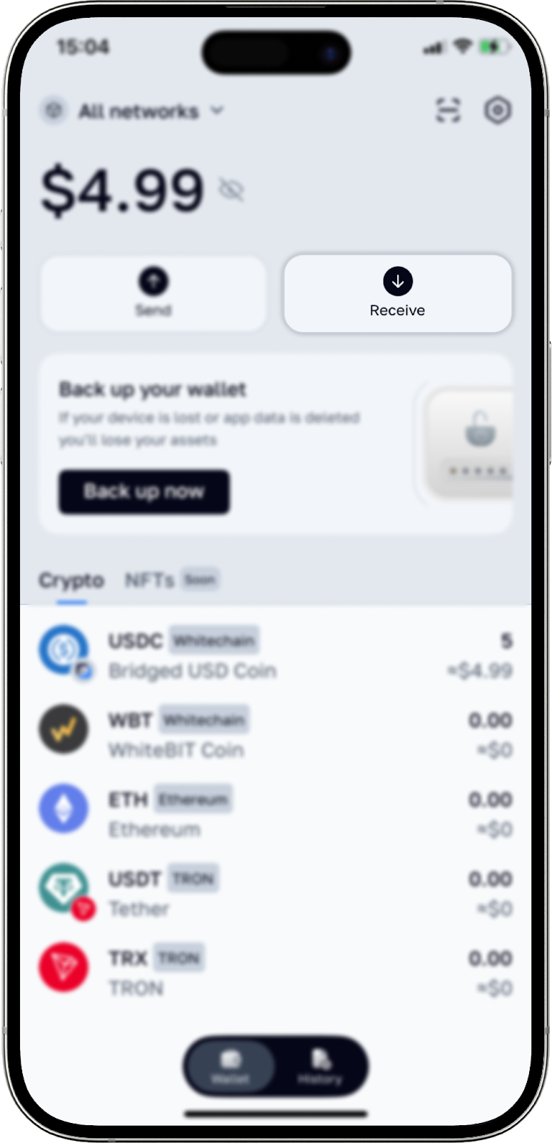Please note: Whitewallet currently supports the Whitechain, Ethereum, Base, Arbitrum, Optimism, Linea, Solana, Tron, TON and BSC networks.