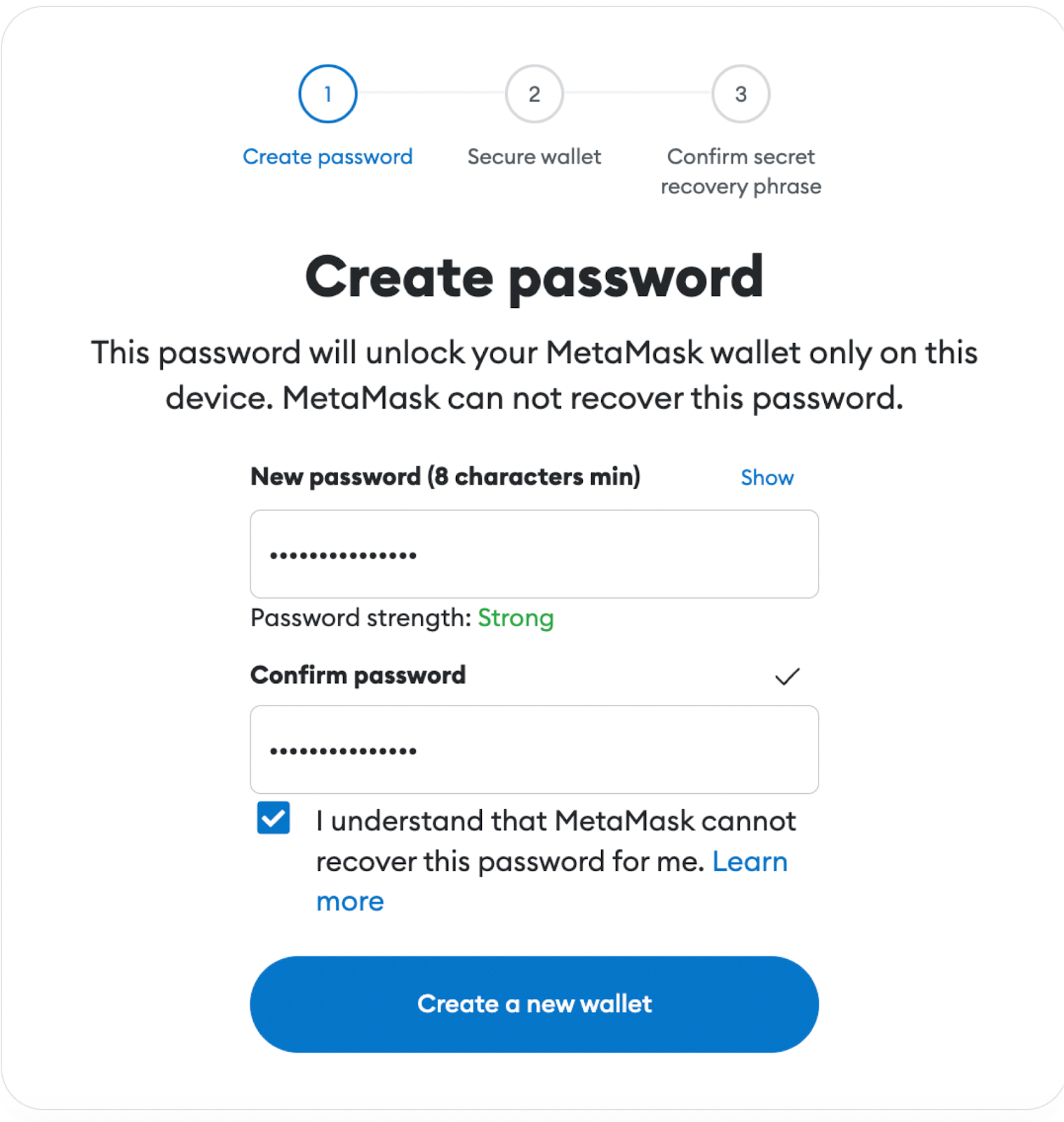 2. Yeni bir cüzdan oluşturmak için “Yeni bir cüzdan oluştur” seçeneğine tıklayın. Ardından, hizmeti iyileştirmek için MetaMask'a anonim verilerinizi göndermek için onay verin. Bu isteğe bağlıdır.
