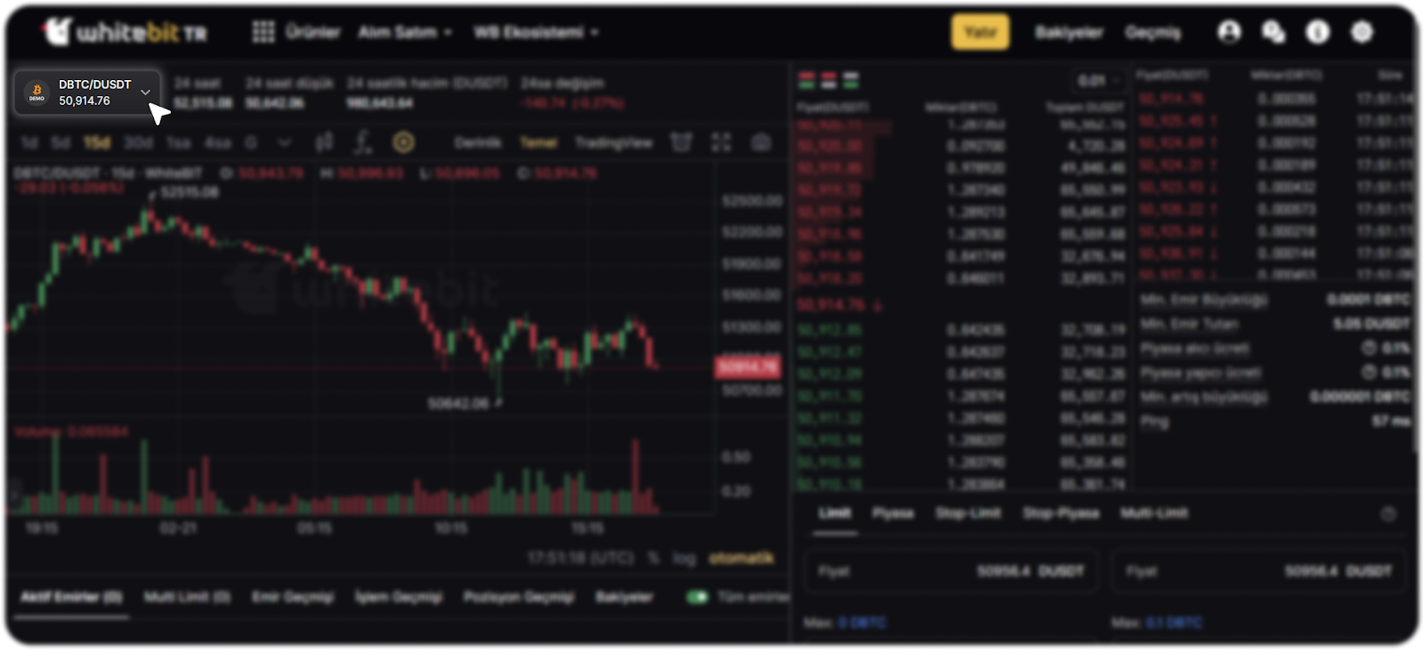 - WhiteBIT Turkey borsası işlem araçlarının neredeyse tümü test edilebilir. (Limit, Piyasa, Stop-limit, Stop-piyasa, Multi-limit emirleri dahil)