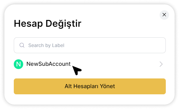 - Oluşturulan Alt Hesaplar listesinden Alt Hesabı seçerek “Değiştir” butonuna tıklayın ve giriş yapın.