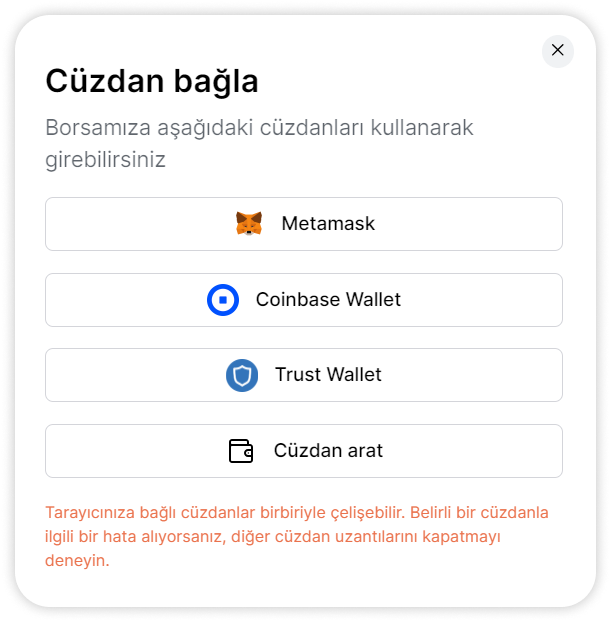 Web3 cüzdanını kullanarak borsamızdaki hesabınıza giriş yapabilirsiniz.