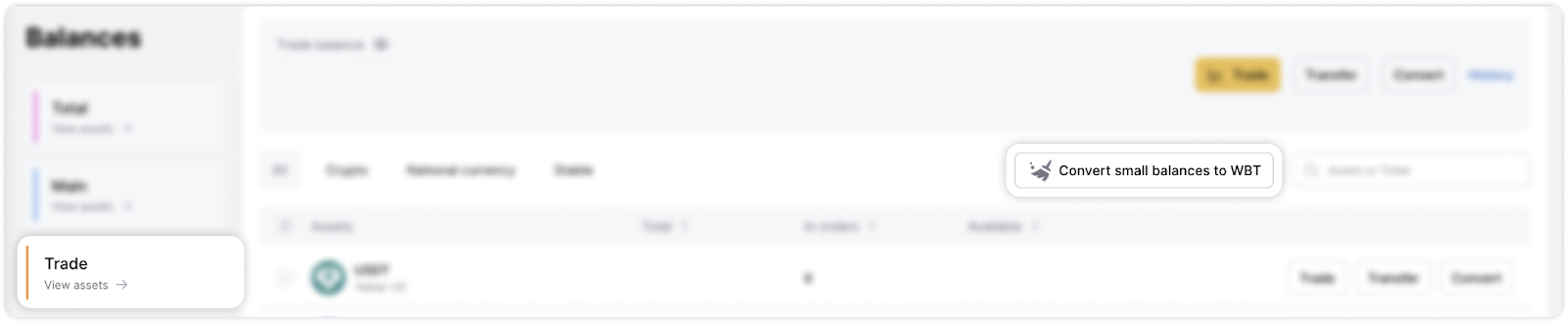 Bunu yapmak için, alım satım bakiyesi sayfasına gitmeniz ve “Küçük bakiyeleri WBT'ye dönüştür” düğmesine tıklamanız gerekir.