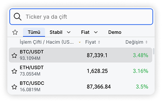 Bir işlem çifti seçtikten sonra, çiftin solundaki yıldız simgesine tıklayarak üst panelde görüntülenecek olan Favoriler listenize ekleyebilirsiniz.