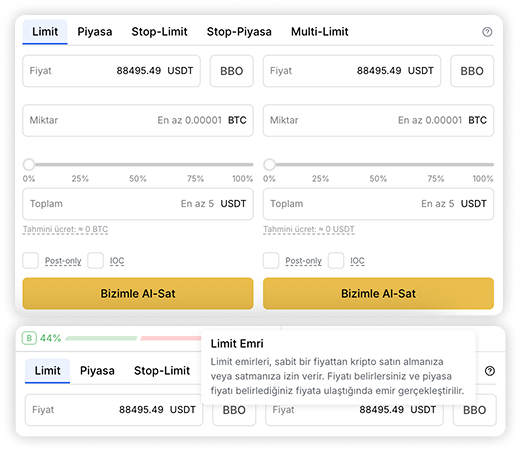 - "Post only ve IOC emir koşulları" bağlantıda.