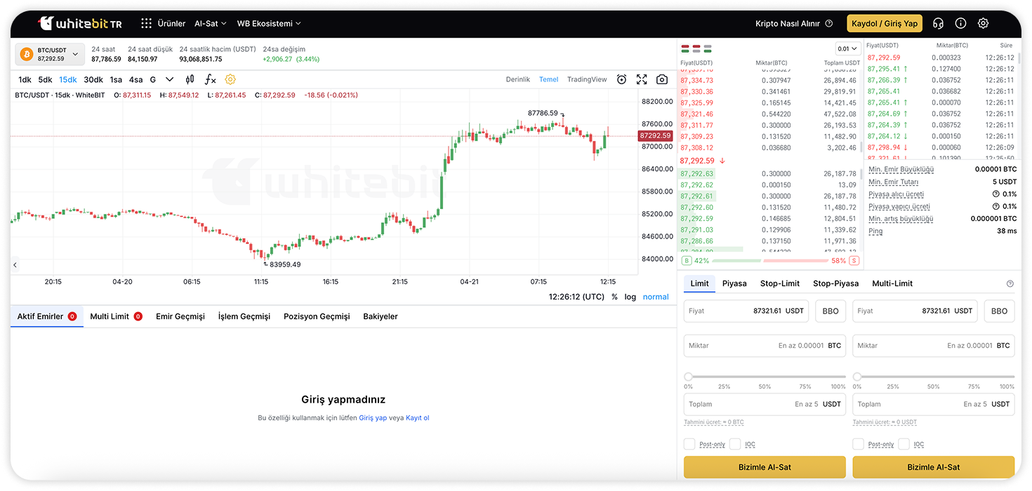 WhiteBIT TR alım satım terminaline genel bakış
